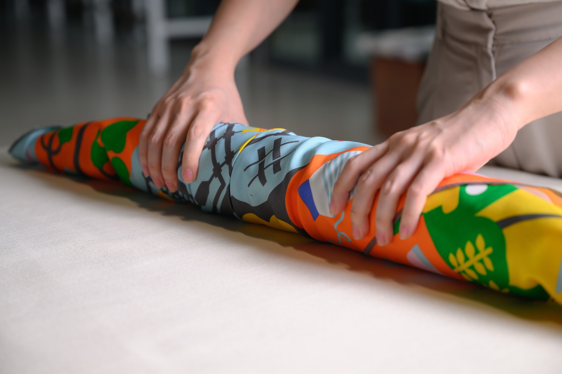 最後的縫紉及包裝工序,則與2019年榮獲亞洲設計大獎的本地社企睿程製作社合作,他們致力為有需要人士如長者和殘疾人士設計專屬的時尚服飾,並讓貧困人士參與製作,提供靈活的工作安排。至於風呂敷的設計就出自插畫家及設計工作室Pop & Zebra之手,其設計充滿想像,色彩豐富而具有異國風味,結合成員來自坦桑尼亞的背景以及熱愛流行文化的特色,並且擅於視覺敘事,是次設計的圖案具有概念性相當耐人尋味。